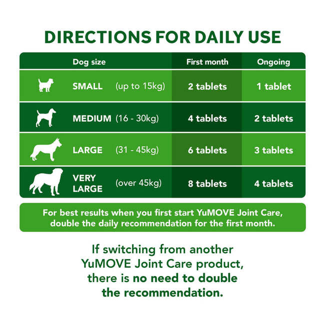 YuMOVE Joint Care for Adult Dogs is triple-action dog joint formulation, recommended for adult dogs who are beginning to show signs of joint stiffness. YuMOVE Joint Care for Adult Dogs provides a special blend of Omega-3s to help soothe stiff joints and aid mobility. This dog joint supplement is a tasty tablet that you feed daily, available in 60, 120 tablets. Already supporting over 2 million dogs globally.*